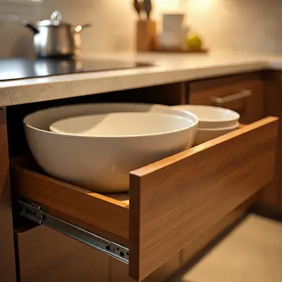 One of the smartest modular kitchen design ideas in 2025 is optimizing every inch of space with advanced storage solutions. Pull-out drawers for spices, cutlery, and crockery allow easy access while keeping the counters clutter-free. Tall units maximize vertical storage, giving you room for groceries and large containers that Indian households often require. These modular solutions make your kitchen look neat, while ensuring functionality is never compromised.