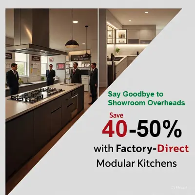 We offer Factory-Direct Modular Kitchens in Delhi NCR – No Showroom Overheads, saving you up to 50%.
