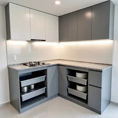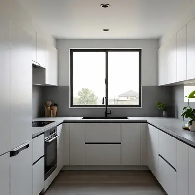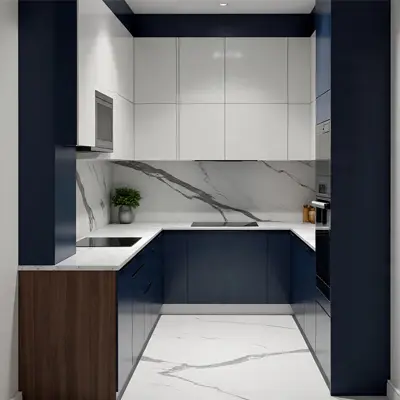Traditional showrooms will charge extra for complex U-shaped setups, but with our factory-direct small modular kitchens, you get precision-built cabinets for all three walls — faster, cheaper, and 100% customized.