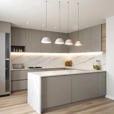 Integrated with modular hobs and sinks, these countertops are custom-cut to fit the exact dimensions of your kitchen, ensuring a perfect blend of functionality and aesthetics.