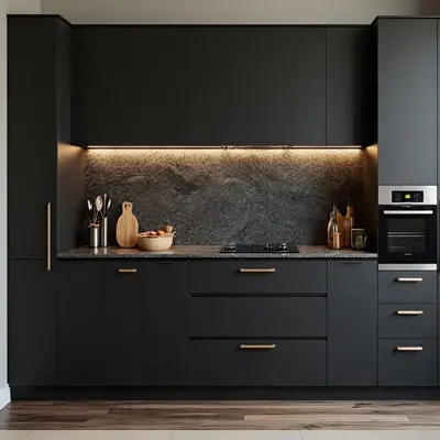 ✅ Base cabinets provide the foundational storage and countertop support. In small kitchens, these are often fitted with deep drawers, space-saving shelves, and soft-close systems for noise-free use.