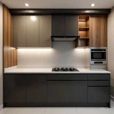A small modular kitchen refers to a kitchen design tailored to fit compact spaces while ensuring every inch is efficiently used. It is a pre-manufactured, customizable setup that includes modular units like cabinets, shelves, countertops, and storage solutions.