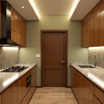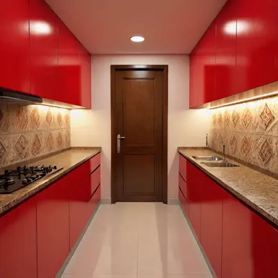 Efficient and clean design suitable for narrow kitchen spaces in Delhi homes