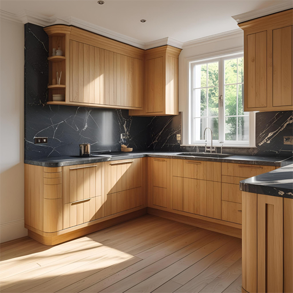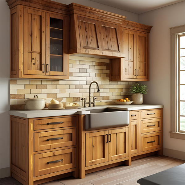 Rustic wood appeals to nature-lovers. Adds an earthy, elegant feel while remaining functional and durable. For those who value warmth and tradition, rustic wooden modular kitchen designs in Delhi bring a natural charm to the heart of your home. Using real wood textures and earthy tones, this design emphasizes craftsmanship and sustainability. It suits Indian cooking styles and adds a cozy ambiance to your kitchen. With modern fittings seamlessly integrated, this design balances old-world charm with new-age utility.