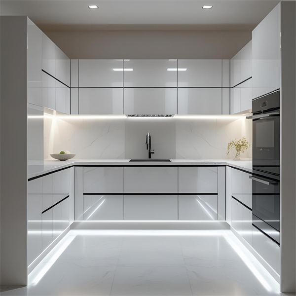 Great for minimalist homes. Clean lines and push-to-open features give a seamless, futuristic vibe. Minimalist and futuristic, handleless modular kitchen designs are ideal for those who prefer clutter-free spaces. The clean look is achieved through push-to-open mechanisms and integrated handles. In Delhi homes where modern aesthetics are valued, this design pairs well with neutral colors, reflective surfaces, and LED lighting.