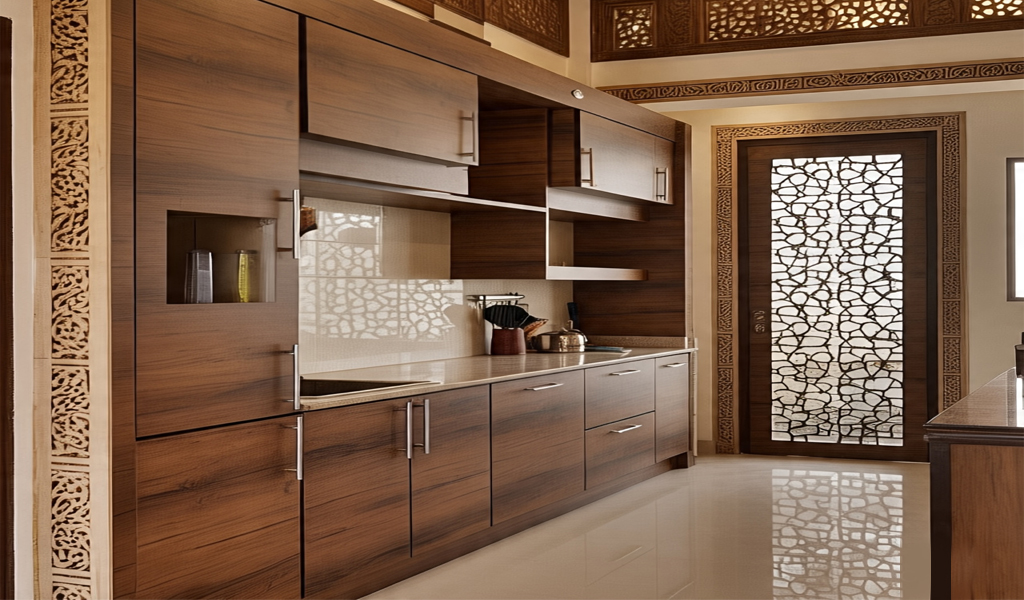 Wood evokes a sense of warmth and elegance. Unlike high-gloss laminates or metal finishes, wooden kitchens bring nature into your space. They’re also incredibly versatile — suitable for both modern and traditional Indian interiors.